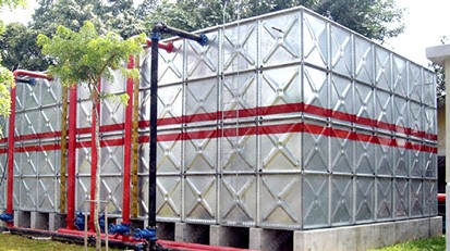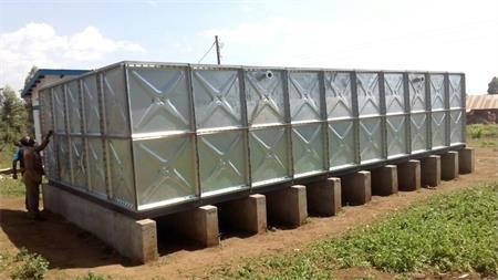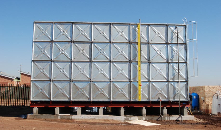 Tank panels of 4ft x 4ft or 1m x 1m square are hot dip galvanized to ISO 1461:1999